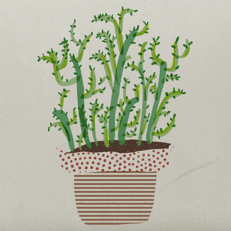 Velvety and succulent, the Pencil Cactus is full of surprises. It excretes a milky sap that could cause blindness if it comes in contact with the eyes, and that could be fatal if ingested. It is a euphorbia — and not actually a cactus — and it photosynthesises through its stems. It can turn into vivid shades of orange, pink, or yellow during cool months.